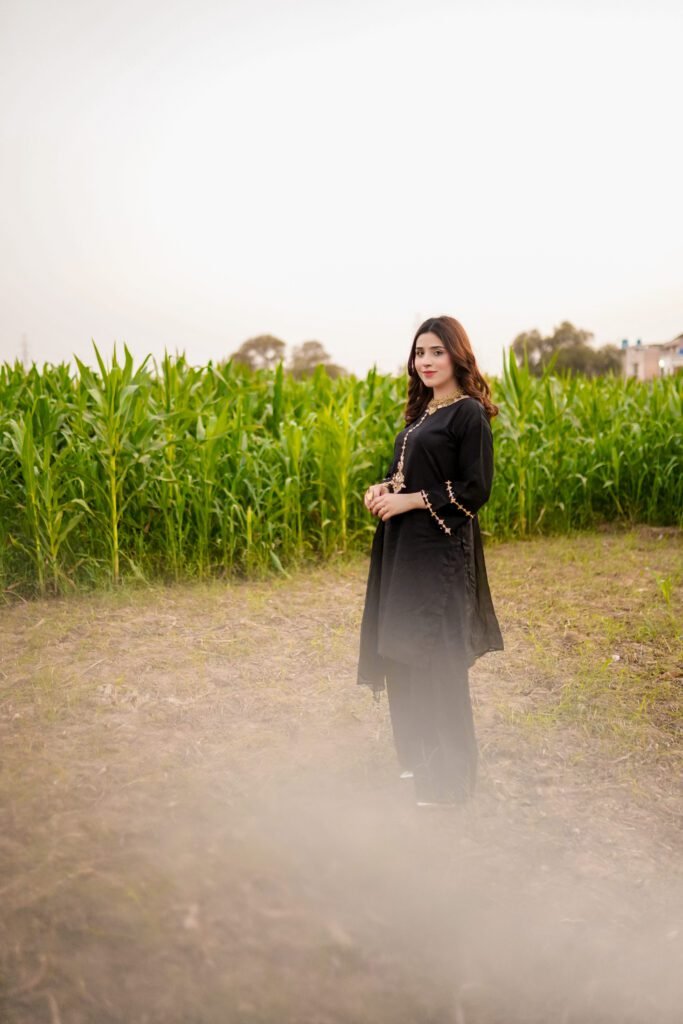 3 Piece Black Shirt, Dupatta & Trouser