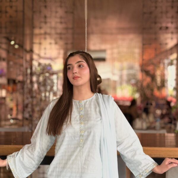 3 Piece Ice Blue Shirt Dupatta & Trouser