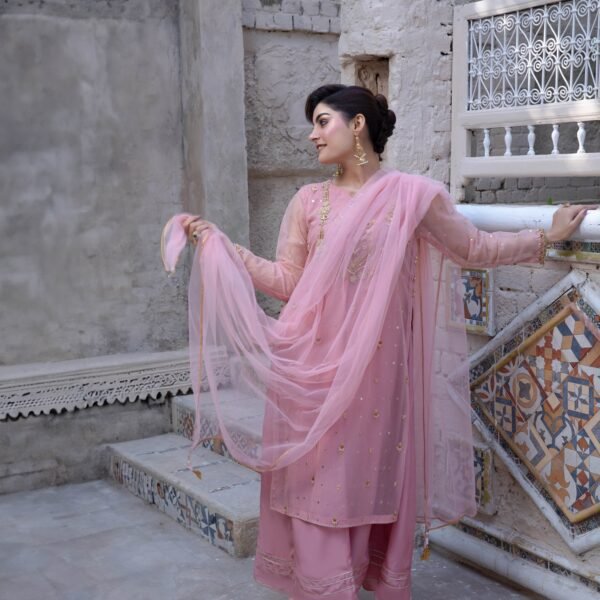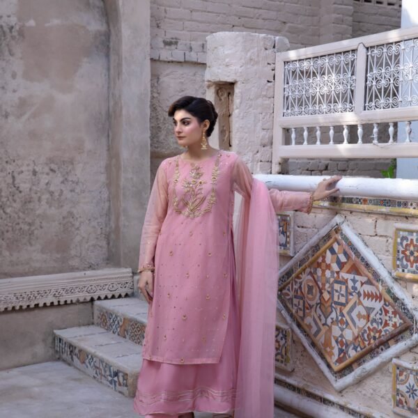 3 Piece Pink Frock Dupatta & Trouser