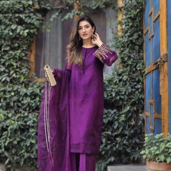 3 Piece Purple Shirt Dupatta & Trouser