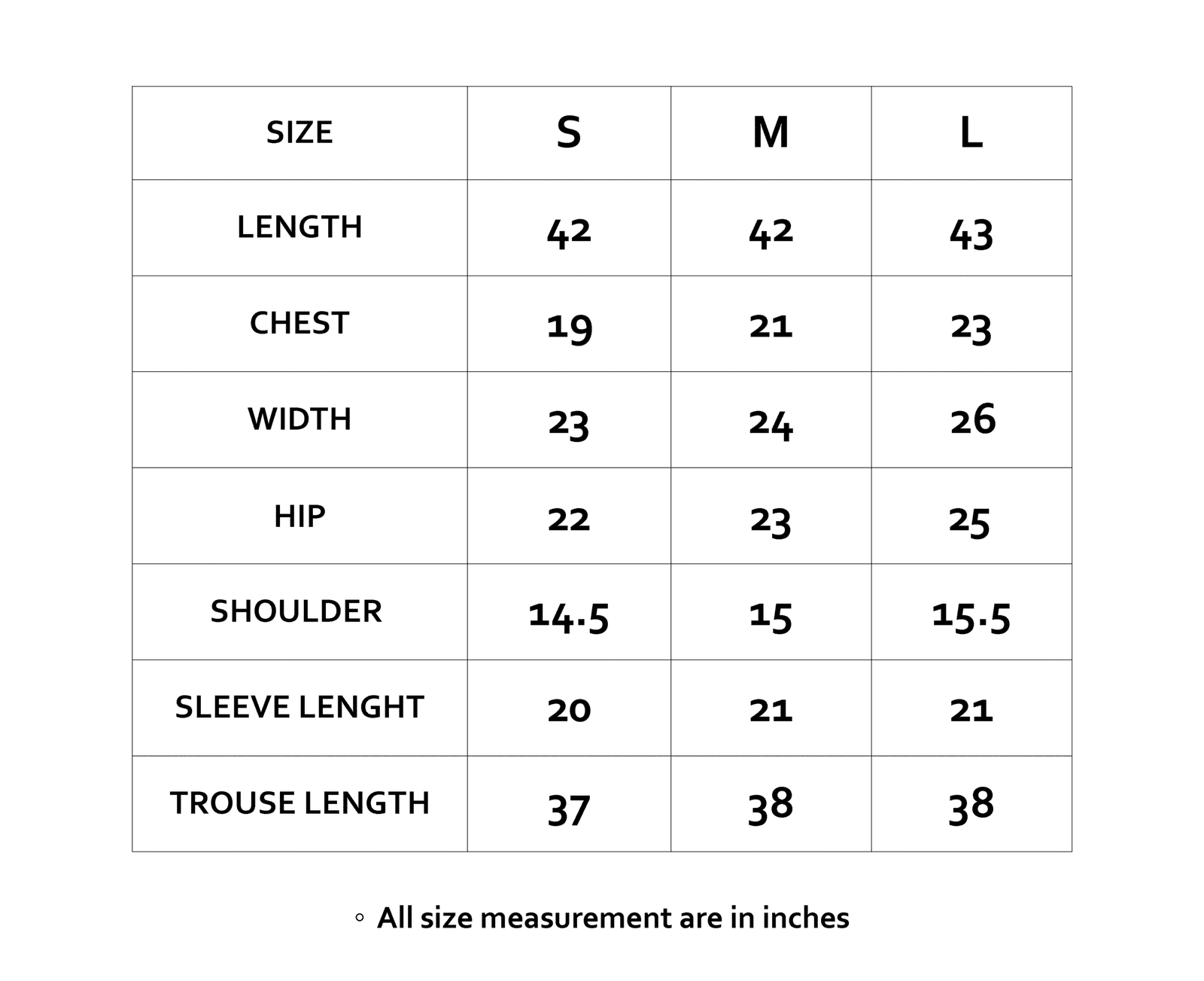 | SLEEVES LENGTH | 20 | 21 | 21 |